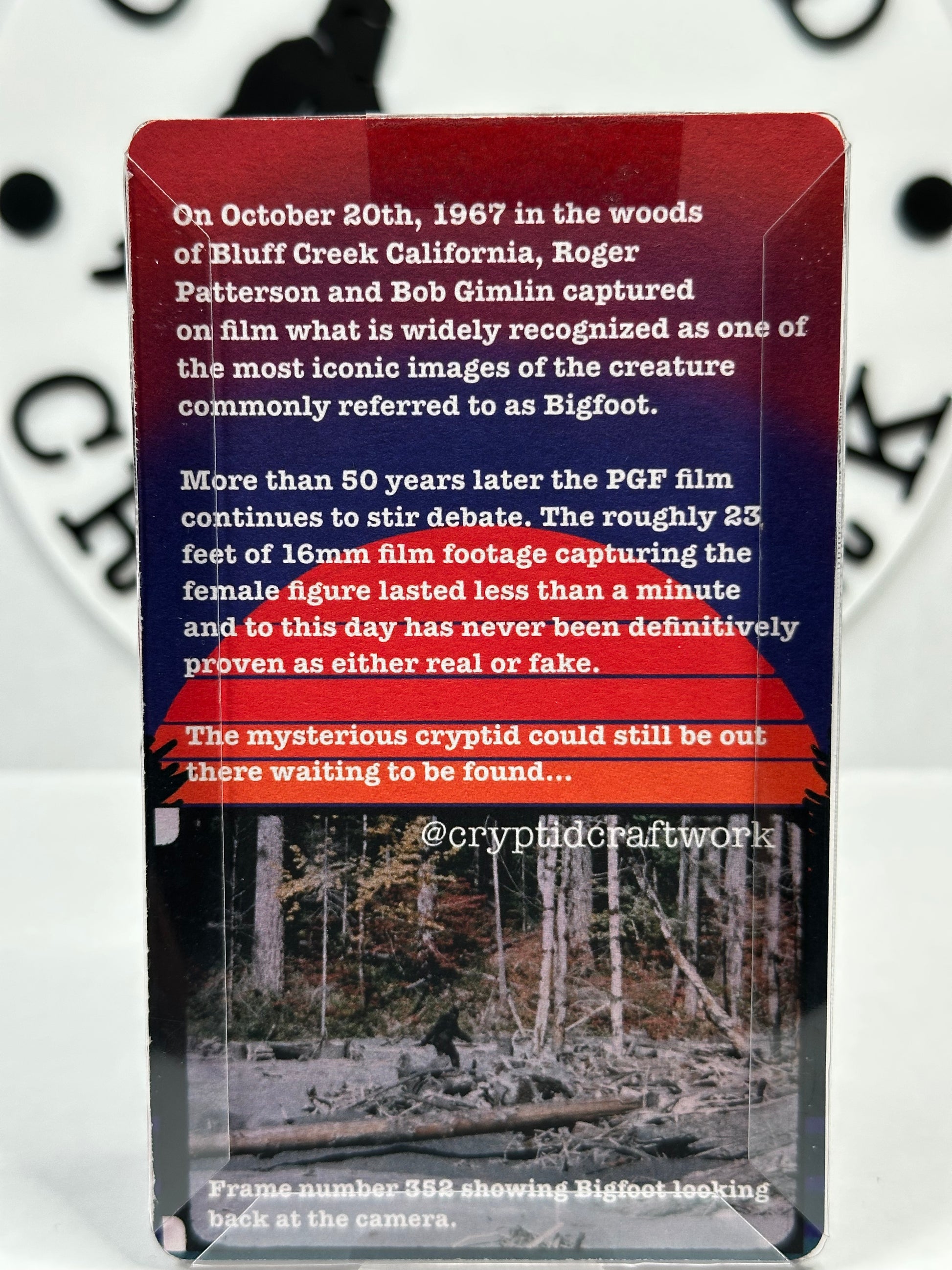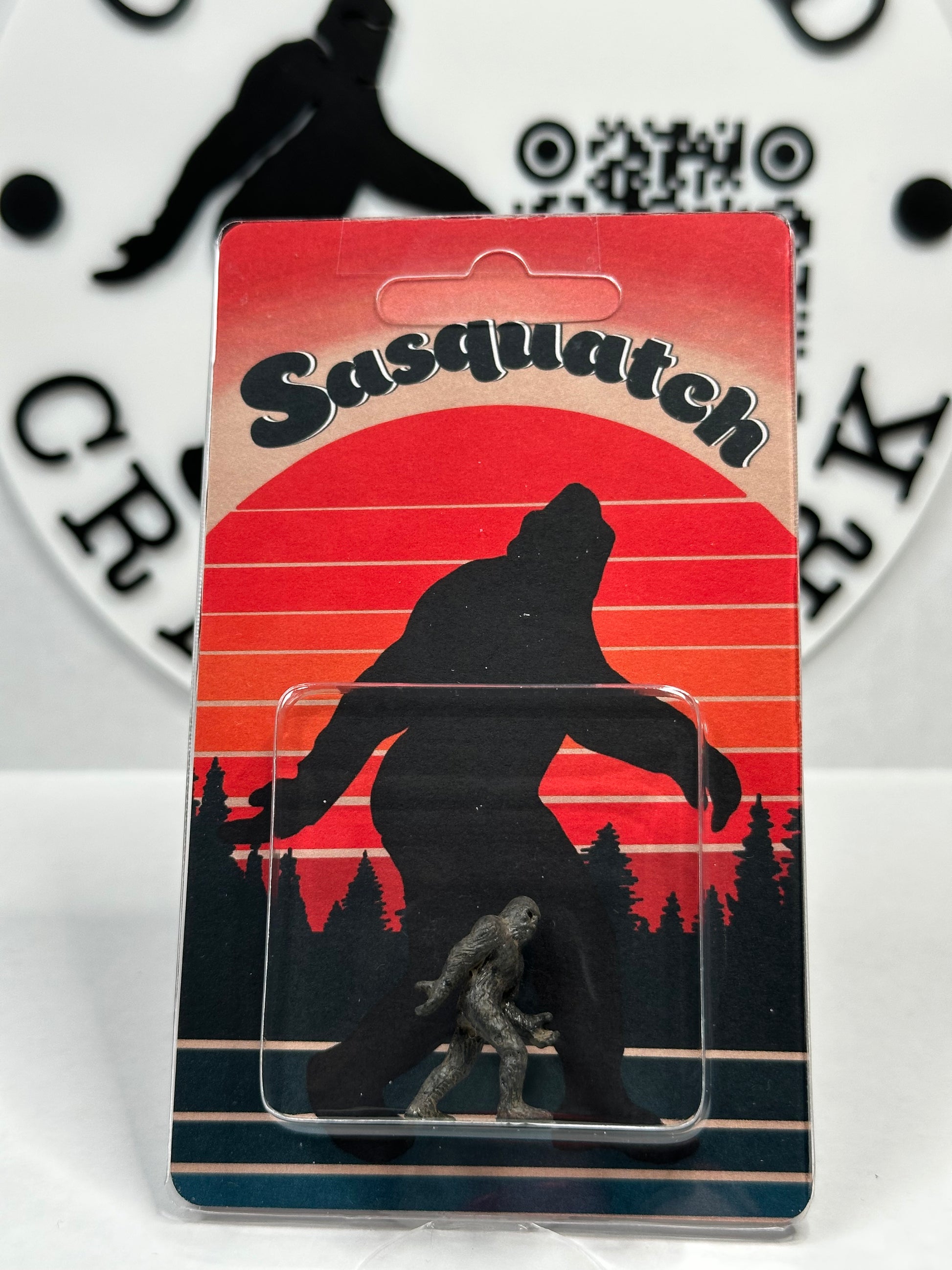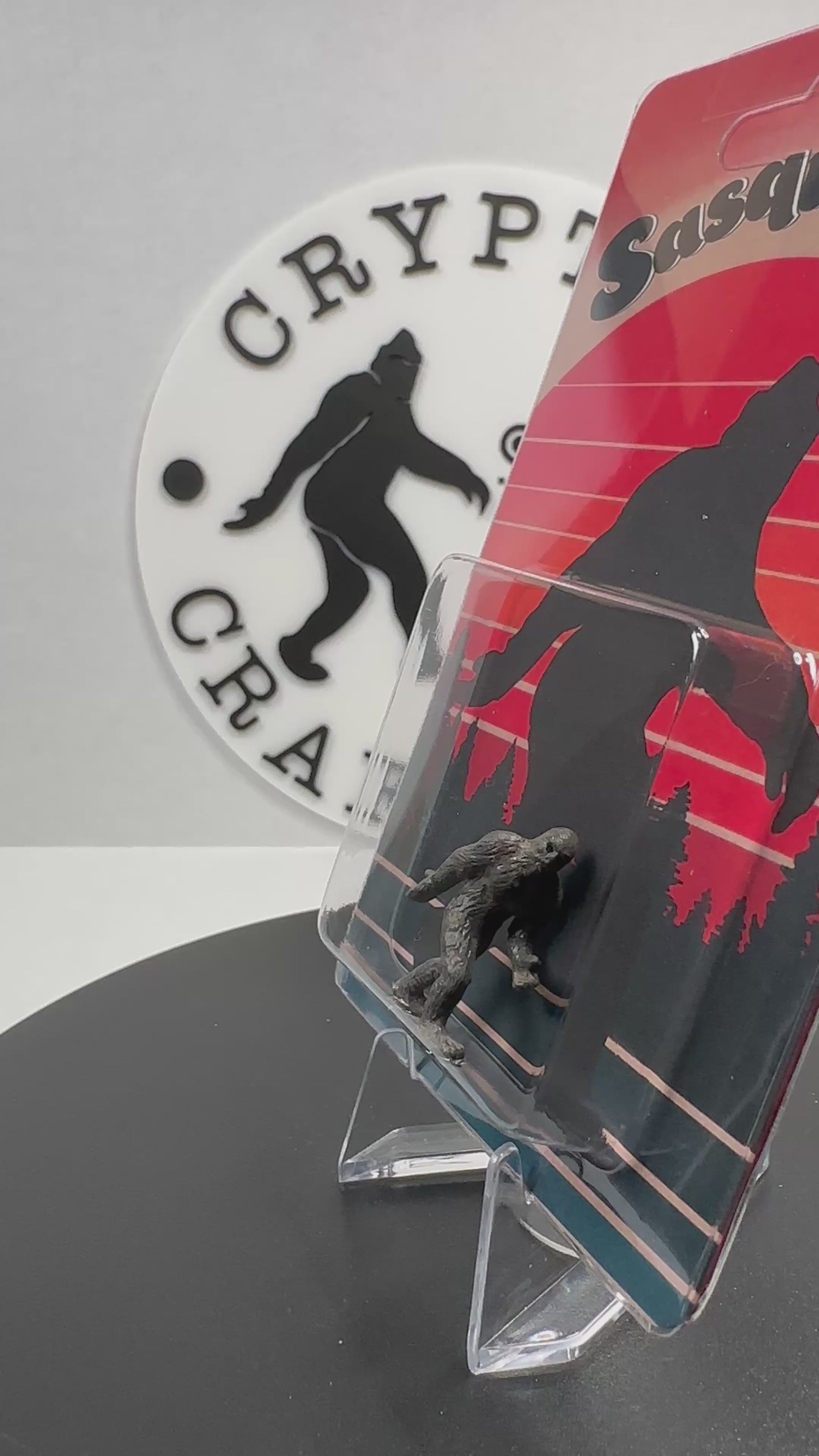 This miniature Sasquatch figure measures roughly 1” tall, is mounted to a clear bubble backed with a vintage retro style card that measures inches 3 inches (wide) x 5 inches (tall) and includes an additional backer card! (clear stand not included)