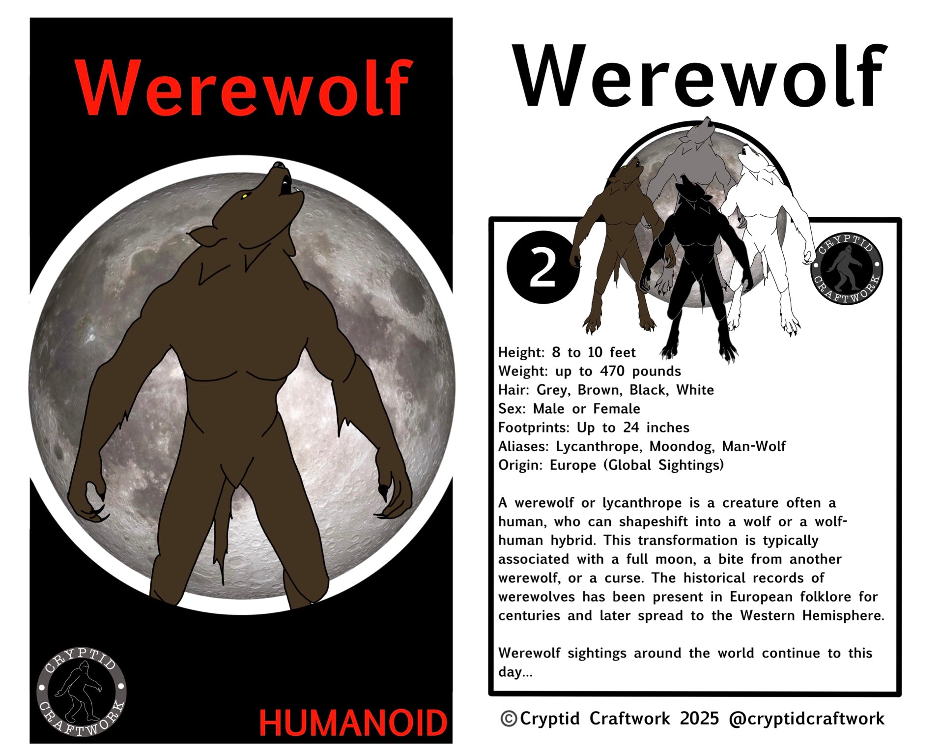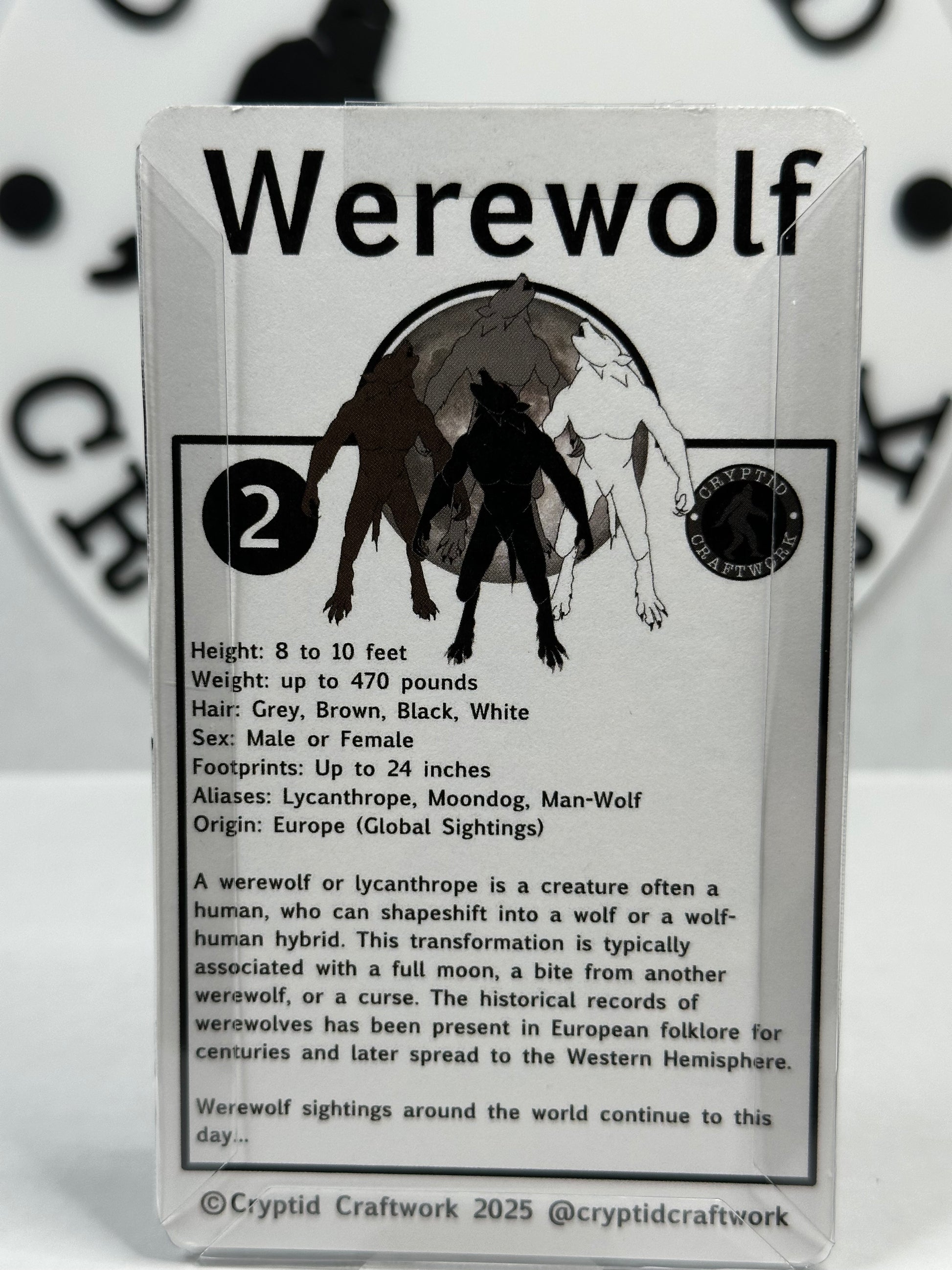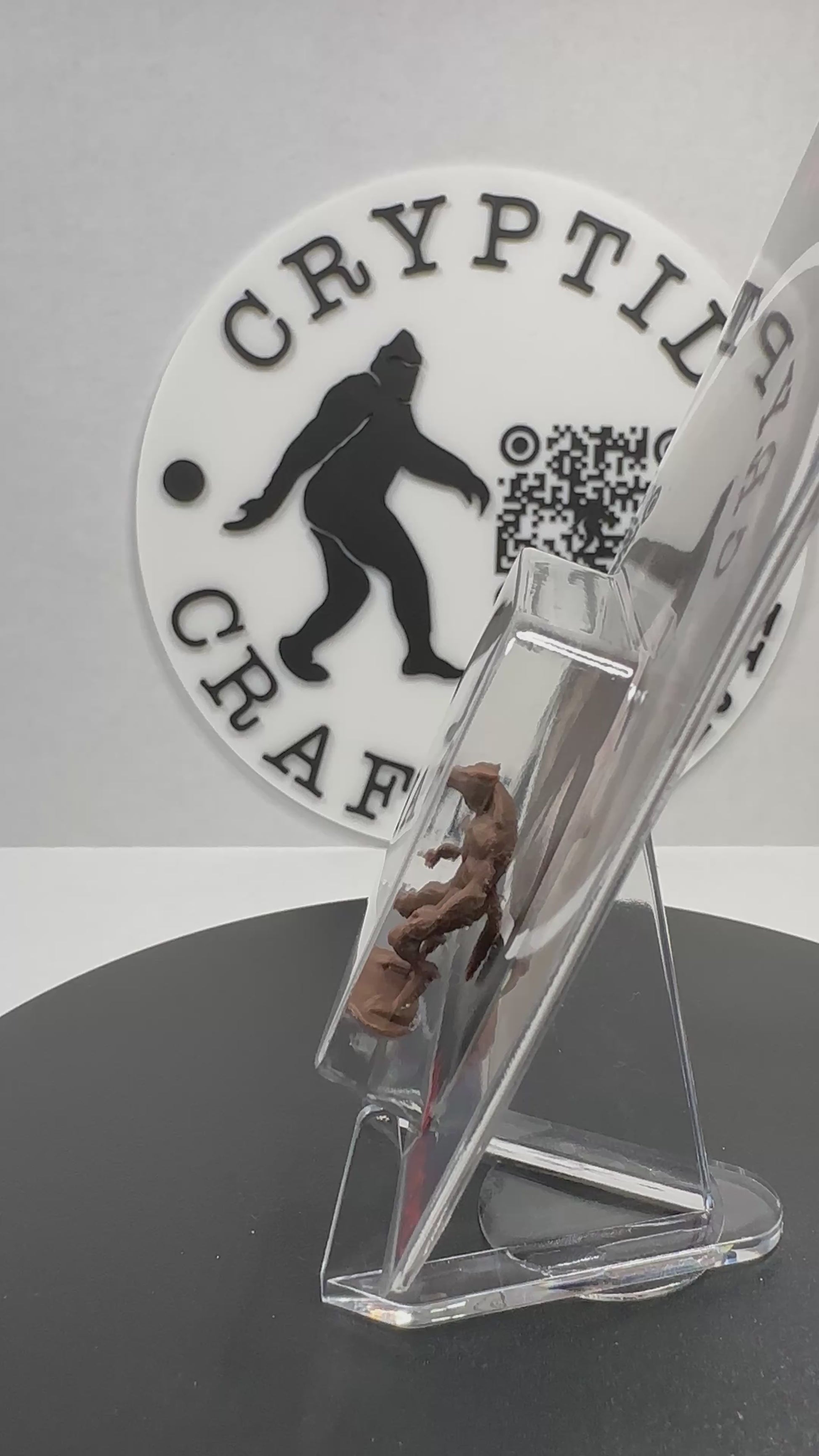 The mini Brown Werewolf or Lycan figure measures roughly 1” tall, is mounted to a clear bubble backed with a vintage retro style card that measures inches 3 inches (wide) x 5 inches (tall) and will include an additional backer card. (clear stand not included)