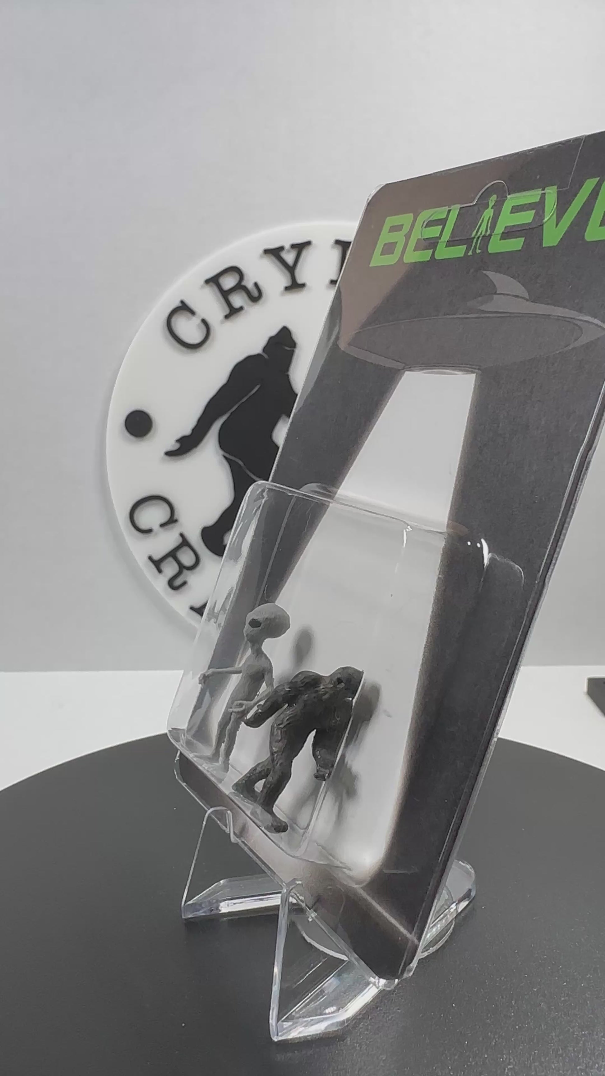Many have speculated that Bigfoot is connected to the UFO phenomena and here is your chance to get your hands on just that...a grey Alien and Bigfoot UFO Abduction "Believe" mini custom carded figures!