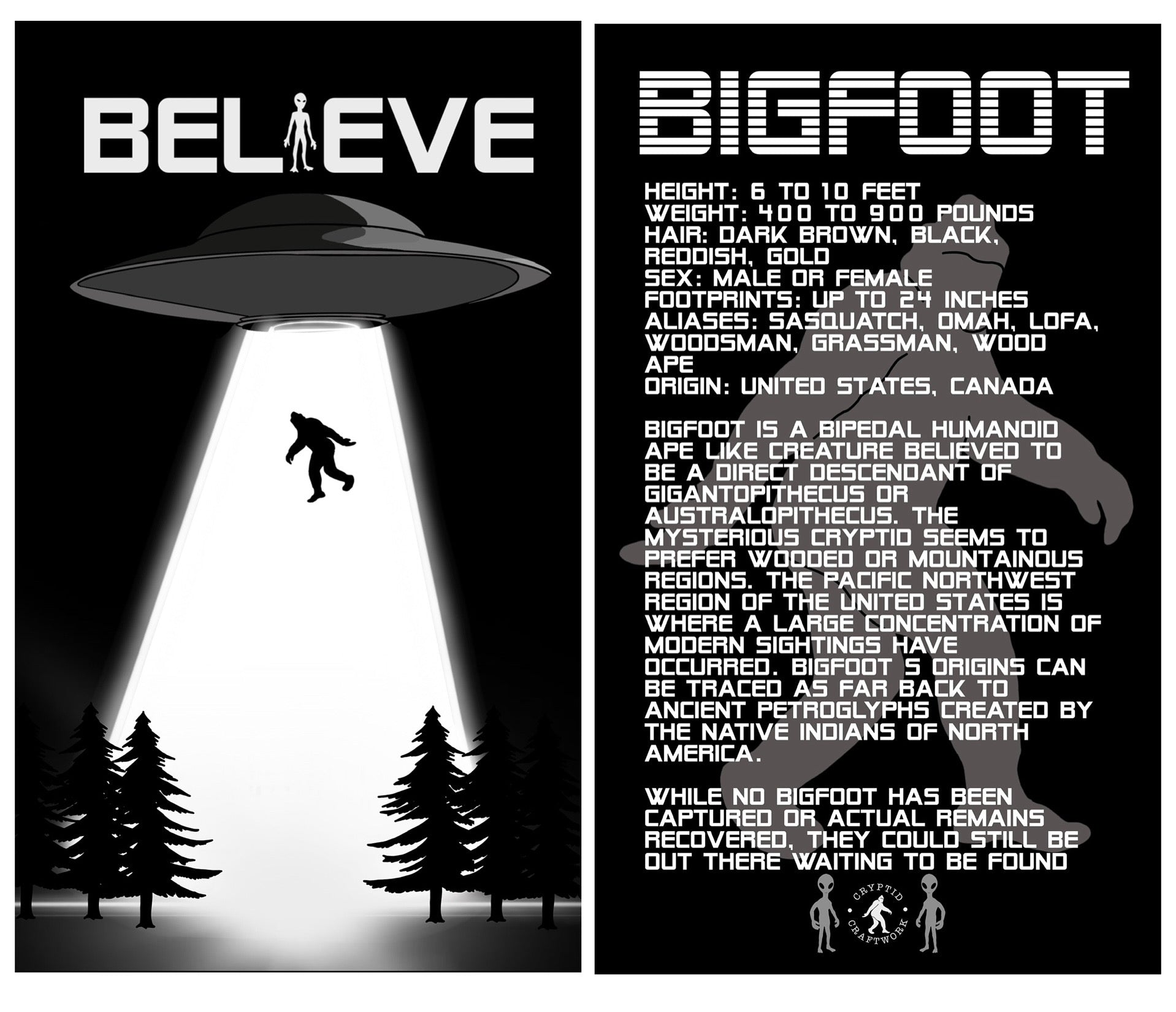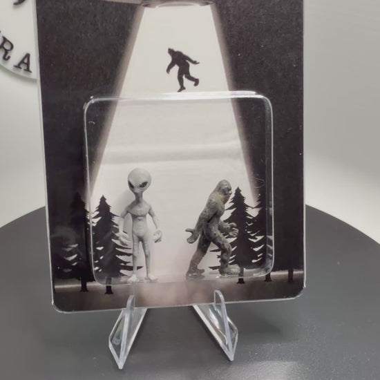 Many have speculated that Bigfoot is connected to the UFO phenomena and here is your chance to get your hands on just that...a grey Alien and Bigfoot UFO Abduction "Believe" mini custom carded figures!